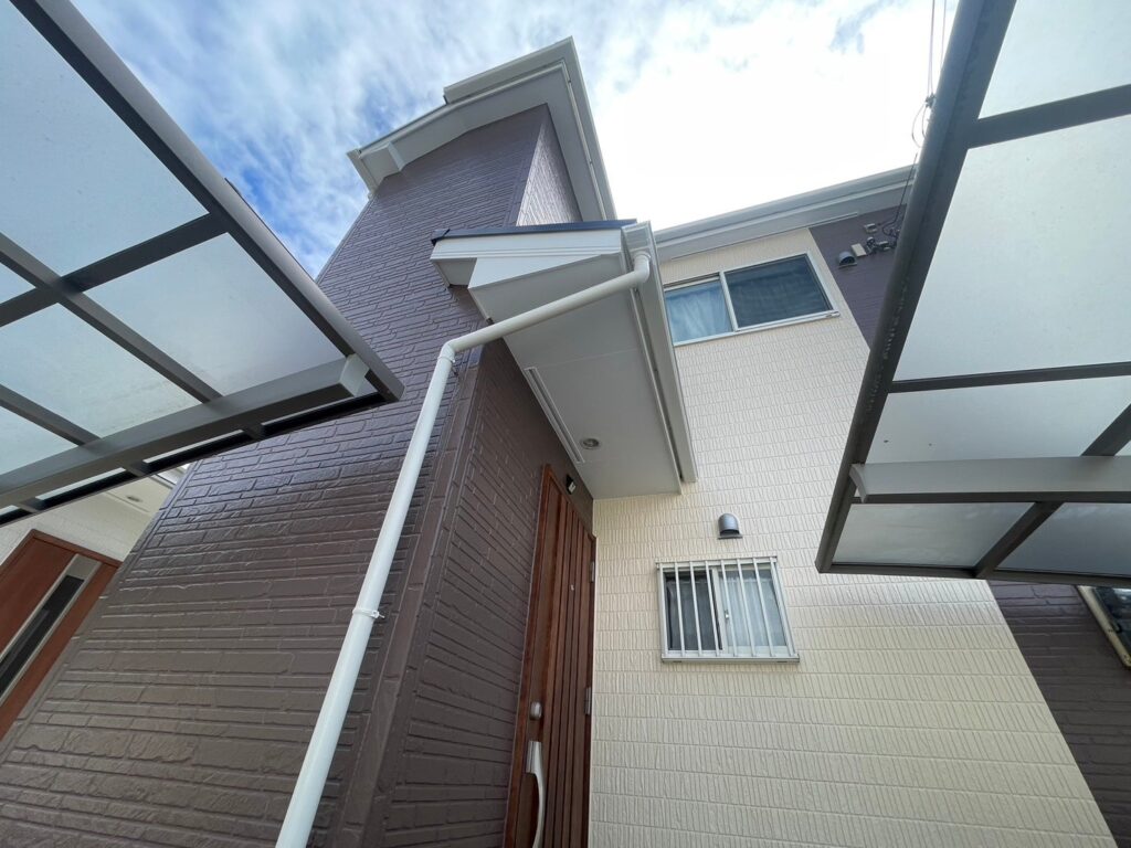 *雨漏り箇所を調査・補修し、脆くなった外壁は貼替えてから塗装を◎