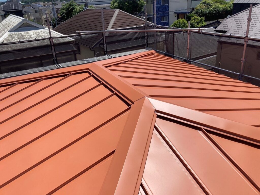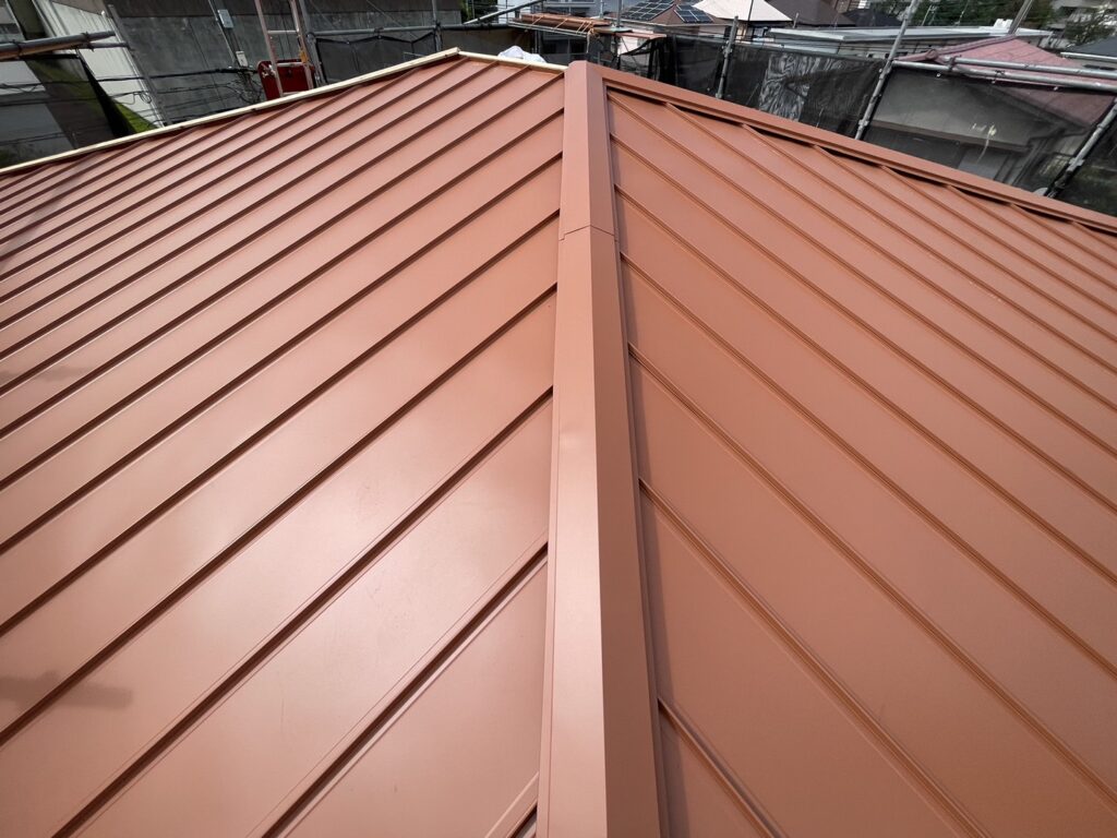 低勾配に合わせてガルバリウム鋼板の立平葺きで施工◇