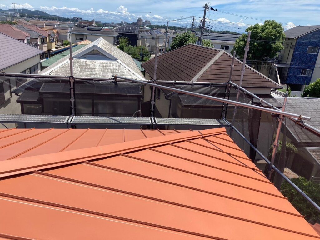 水の流れを作るため、ガルバリウム鋼板を立平葺きカバー工法することで雨漏り改善を目指します。
